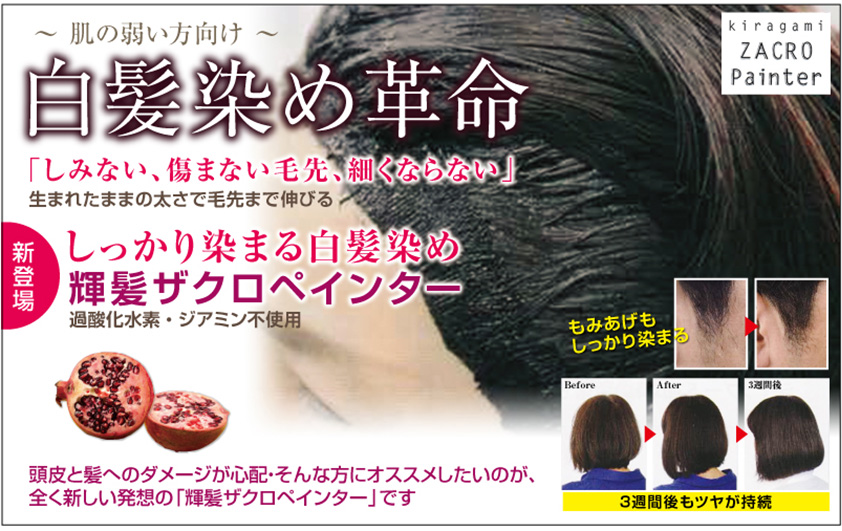 ザクロペインターはノンジアミンカラーですが、 根元からしっかり染められます。